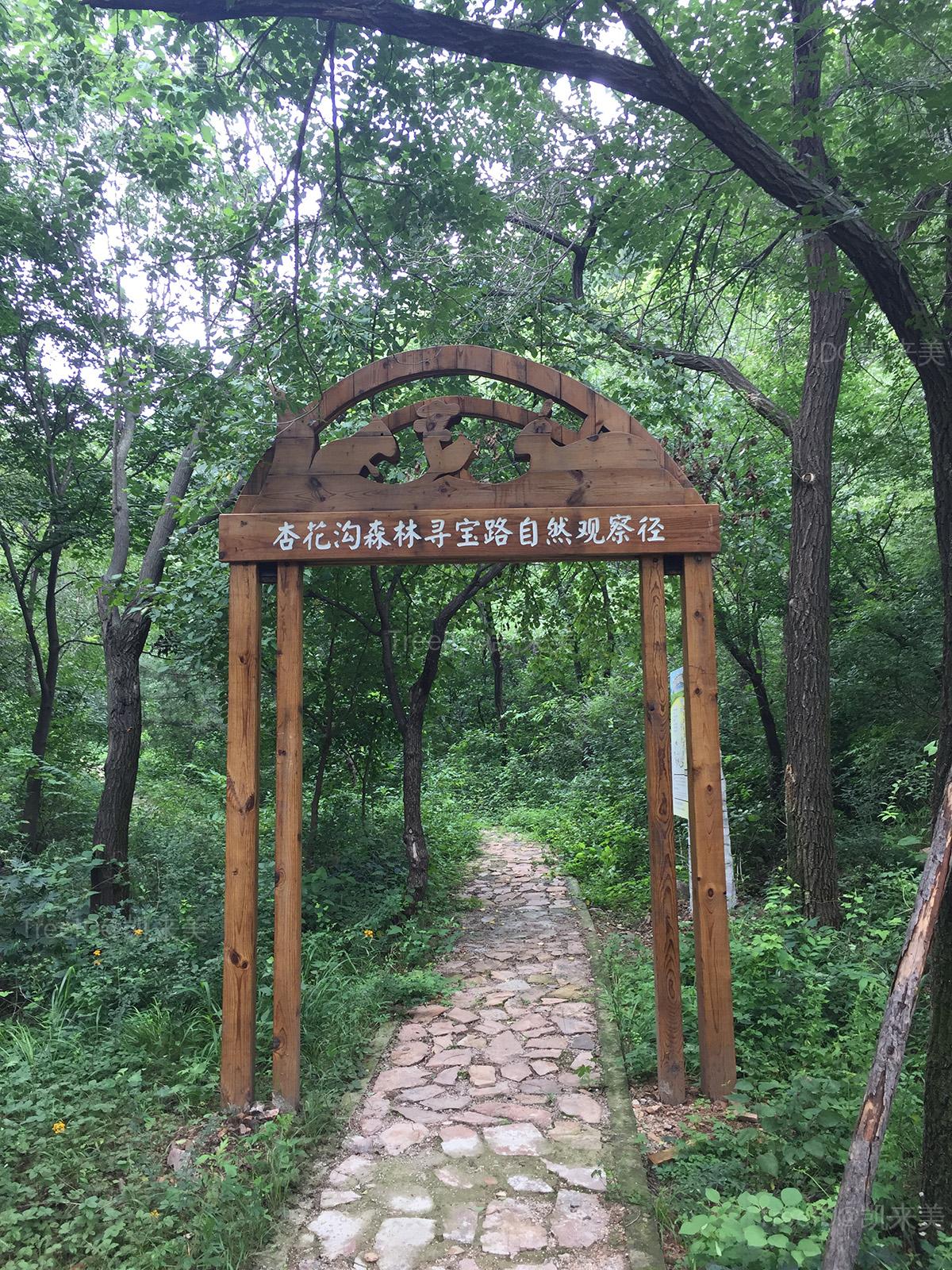 杏花沟自然观察径全长2公里,是综合型的户外活动体验区,自东向西分别为:入口集散区、自然观察区、团队拓展区、植物缓冲区、家庭露营区,分别承载集散,环境教育,户外拓展和供儿童集中活动的功能,通过多样化的互动体验设施,让游客在游憩的过程中了解知识加深对自然的感情。
