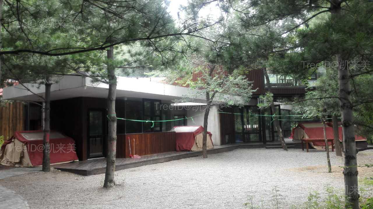 大本营为轻钢建筑,共上下二层,本着环境友好的原则,以达到对自然最小的干扰。建筑配备了物资供给区、卫生间、休息桌椅等,主要功能为食物补给、避雨、露营。