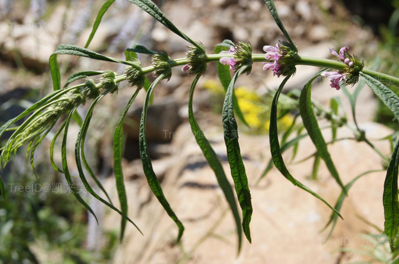 叶茎下部叶轮廓为卵形,基部宽楔形,掌状3裂,裂片又羽状分裂。 轮伞花序腋生;花萼管状钟形;花冠粉红至淡紫红色,二唇形。 小坚果长圆状三棱形。 花期通常在6-9月,果期9-10月。 为一杂草,生长于多种生境,尤以阳处为多,海拔可高达3400米。