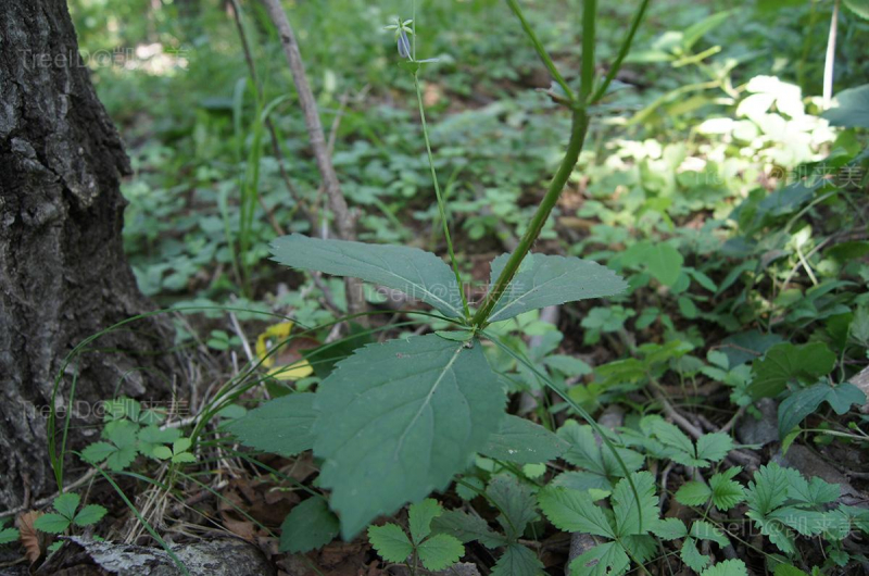 根胡萝卜形。 茎高,无毛或有疏柔毛。 叶轮生,菱状卵形,边缘具粗锐锯齿。 圆锥花序分枝成塔形,花下垂;花冠钟形,淡蓝紫色。 生山地草坡或林边。