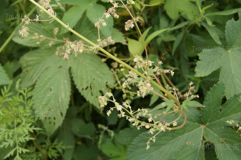 叶纸质,肾状五角形。雄花小,黄绿色,圆锥花序;雌花序球果状,苞片纸质,三角形,顶端渐尖,具白色绒毛。瘦果成熟时露出苞片外。