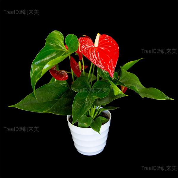 花烛花姿奇特美妍。花期持久,适合盆栽、切花或庭园荫蔽处丛植美化。