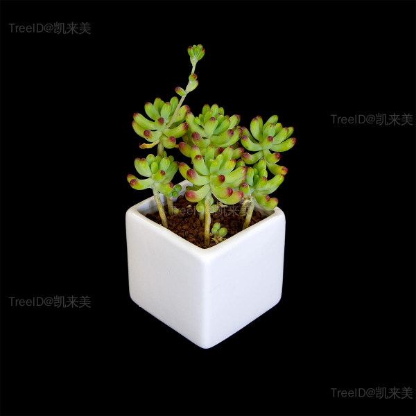 多分枝。叶片密集排列在枝干的顶端。叶片肥厚,叶色翠绿至粉红。强光与昼夜温差大或冬季低温期叶色慢慢变红,叶片微粉红至深红。弱光则叶色浅绿或墨绿,叶片拉长。叶片上覆有细微白粉,老叶白粉掉落後呈光滑状。花五瓣,近无柄。萼片基部离生,具短距,不等,纺锤形至倒披针形。花瓣离生,近卵形,黄色。