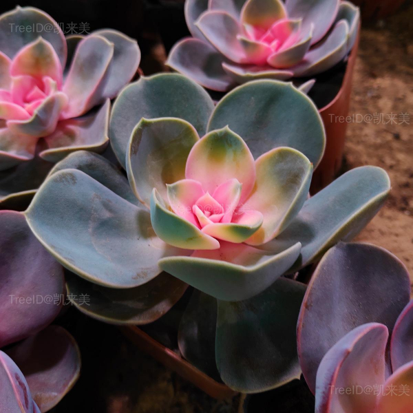 粉彩莲(Echeveria gibbiflora f. metallica)和星影(E. elegans ‘Potosina)的交配种。