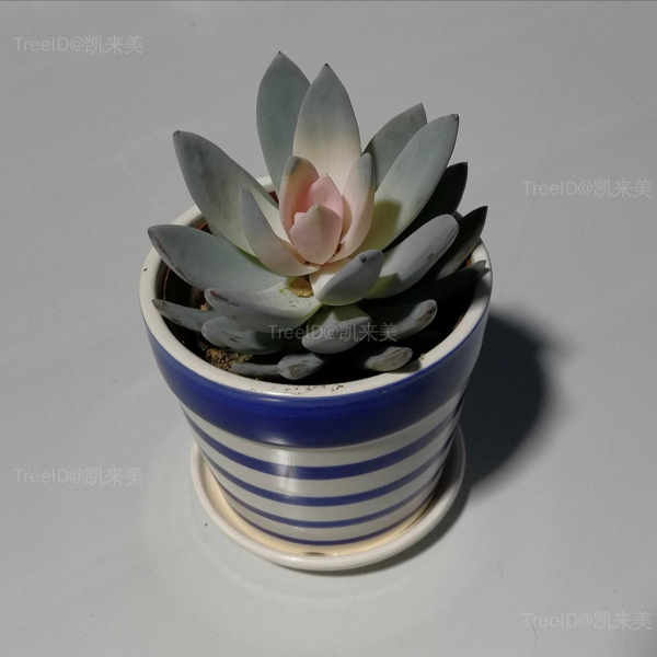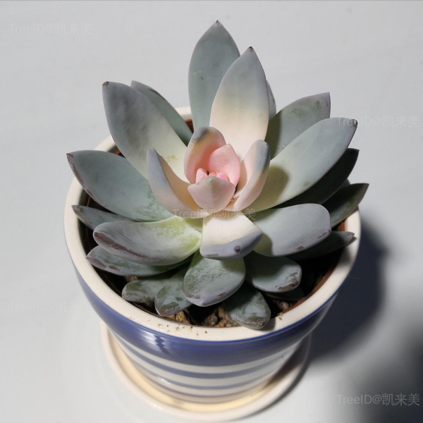 据说是:由厚叶草属的星美人(Pachyphytum oviferum,也有说是叫鸡蛋美人)和拟石莲花属的广寒宫(Echeveria cante)杂交而来。