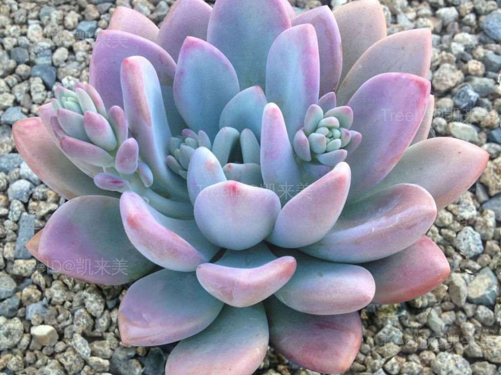 据说是Graptopetalum amethystinum(醉美人)和 Echeveria colorata(卡罗拉)杂交培育的园艺品种。