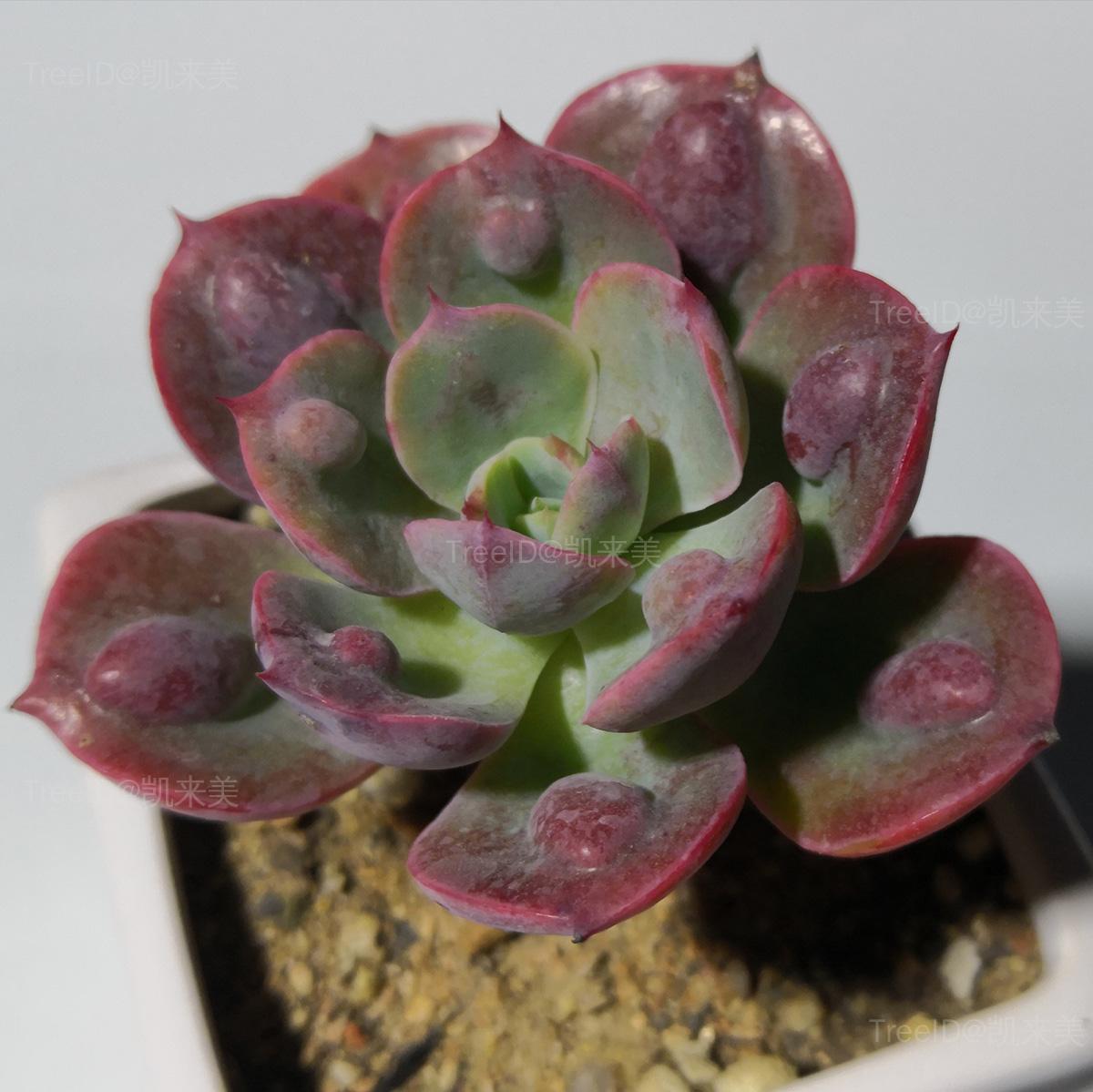 长瘤子的系列多肉品种中第一个瘤子长在叶片中间而且性状单一(形似雨滴),同时也是第一个较小的拟石莲花属有长瘤子的。
