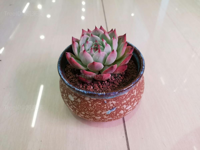 小型品种,植株莲座状,叶倒卵形,略厚,叶色粉白到粉青,叶尖具短尖,易红,红得醒目。