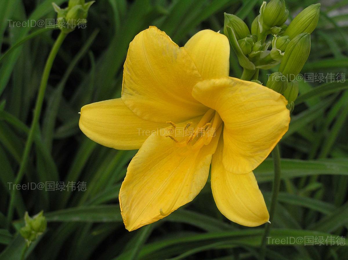 莛粗壮,高约35厘米。螺旋状聚伞花序,花7至10朵。花冠漏斗形,花径约7至8厘米,金黄色。花期5至11月(6至7月为盛花期,8至11月为续花期),单花开放5至7天。