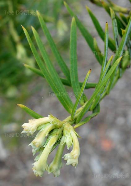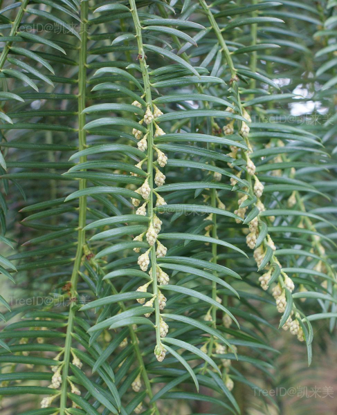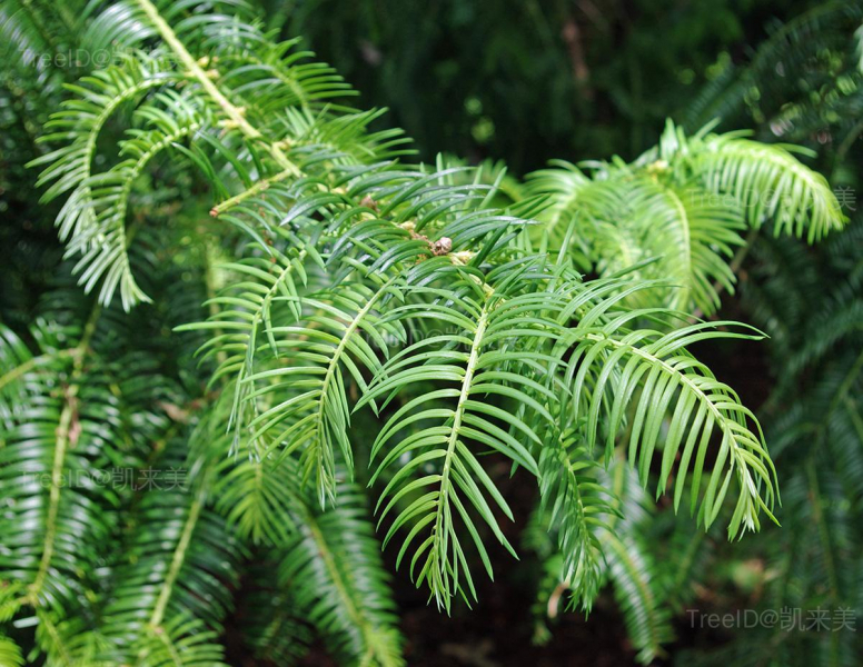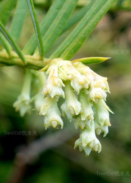 叶条形,长2-5厘米,宽约3毫米,排列成两列,先端尖,质地较厚。种子通常2-5个着生在一起,卵圆形、椭圆状卵形或近球形,长1.8-2.5厘米,熟时红褐色。