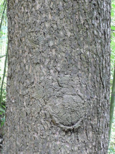 常绿乔木,高8-15米,胸径50厘米;树皮灰色,裂成块片脱落。