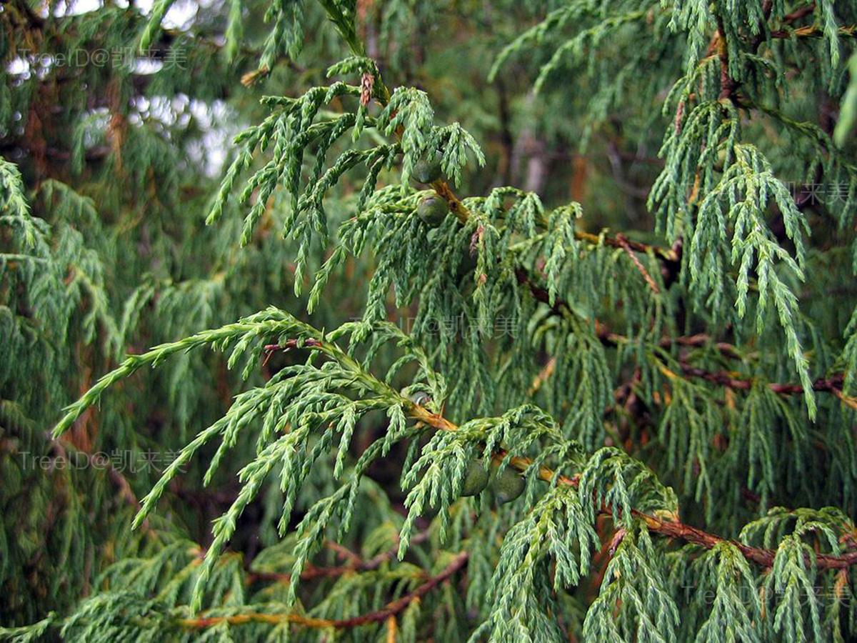 鳞叶交互对生;幼树为刺形叶,3枚轮生或交叉对生。球果锥状卵圆形,长6-8毫米,着生在弯曲的小枝顶端,熟时红褐色或暗褐色,肉质,不开裂。