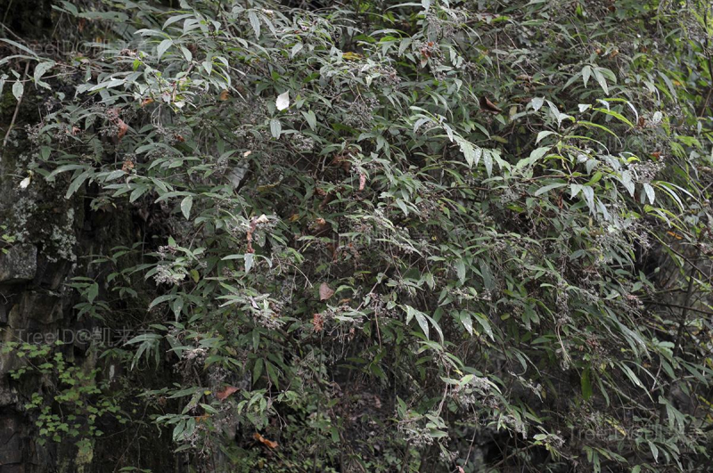 叶椭圆状披针形或长圆状披针形,长5-10厘米,宽2-3厘米,边缘具细锯齿,上面疏被星状毛,下面密被星状毛。聚伞花序长6-10厘米,有花12-20多朵;花瓣白色。蒴果半球形。