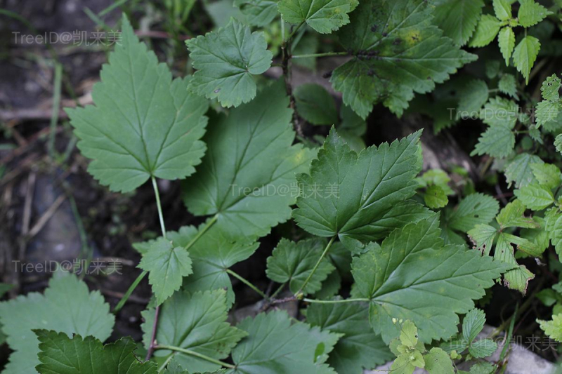 叶宽卵圆形或近圆形,长5-9厘米,宽4-9厘米,基部心形,掌状3-5裂,顶生裂片三角状卵圆形,长于侧生裂片,边缘具不整齐粗重锯齿;叶柄长3-5厘米。