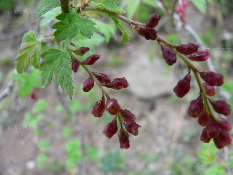 叶卵圆形或宽三角状卵圆形,长5-9厘米,宽几与长相等,基部心形,常3-5裂,顶生裂片长于侧生裂片,边缘具不规则锯齿;叶柄长5-10厘米。花两性;总状花序长5-10厘米,下垂,具9-25朵疏松排列的花;花萼绿色而有红晕;花瓣倒三角状扇形,长1-1.8毫米。果实球形,几无梗,直径5-7毫米,黑色。