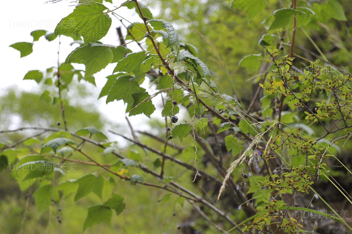 叶卵圆形,长5-12厘米,长宽近相等,基部深心脏形,两面无毛,掌状3,裂片卵圆形或三角状卵圆形。花两性;总状花序疏松下垂;花萼绿色带紫红色;花瓣近扇形。果实球形,黑色,无毛。