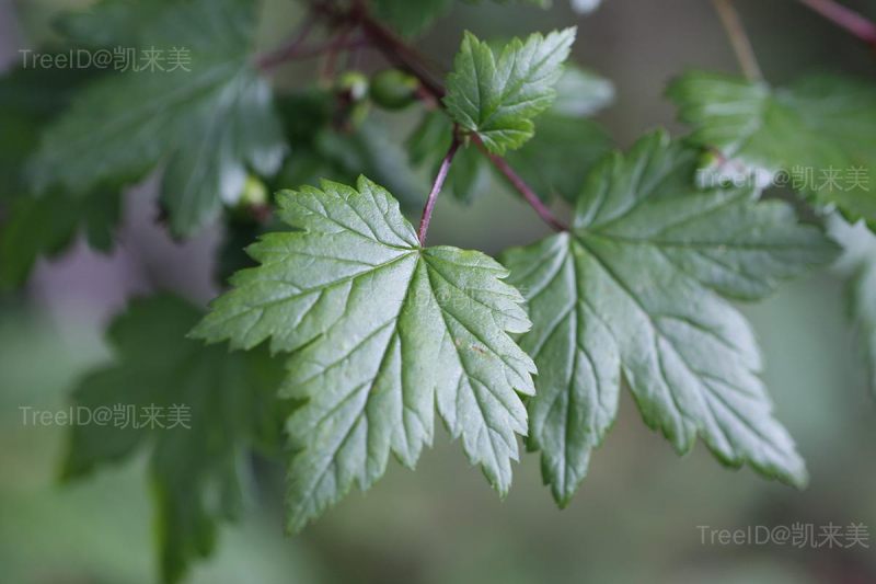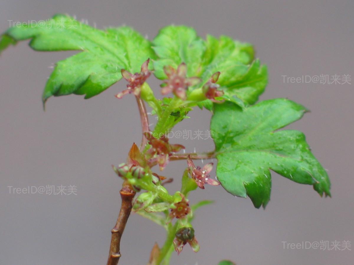 叶卵圆形或近圆形,长、宽各2-4厘米,基部截形,掌状3-5浅裂,顶生裂片三角状长卵圆形,长于侧生裂片1倍以上,边缘具不整齐的粗钝重锯齿;叶柄长1-2厘米。