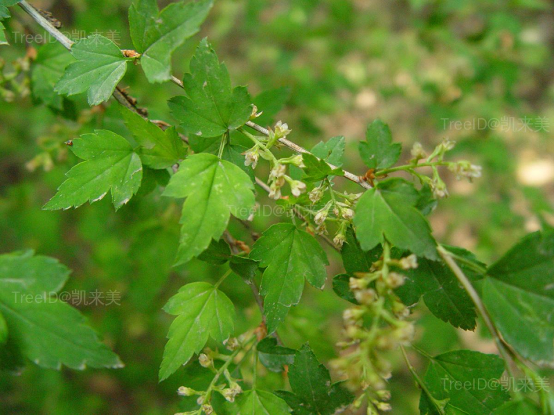 叶宽卵圆形或近圆形,长2-6厘米,宽2-5厘米,基部近圆形至截形,两面无毛,掌状3浅裂,顶生裂片比侧生裂片长得多,先端急尖,具不整齐圆钝粗锯齿;叶柄长6-17毫米。