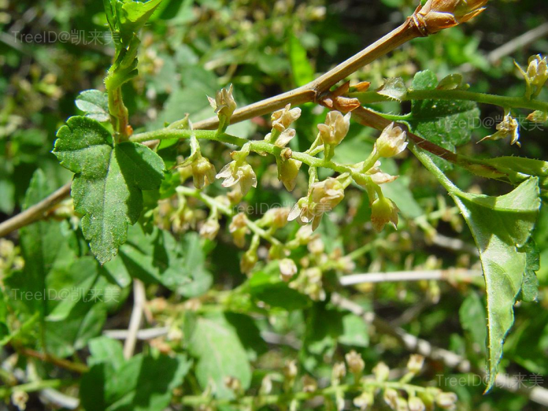 花单性,雌雄异株,排成直立短总状花序;雄花序具花10余朵;雌花序长1.5-2.5厘米,具花5-10朵;花萼绿色;萼筒杯形;花瓣小。