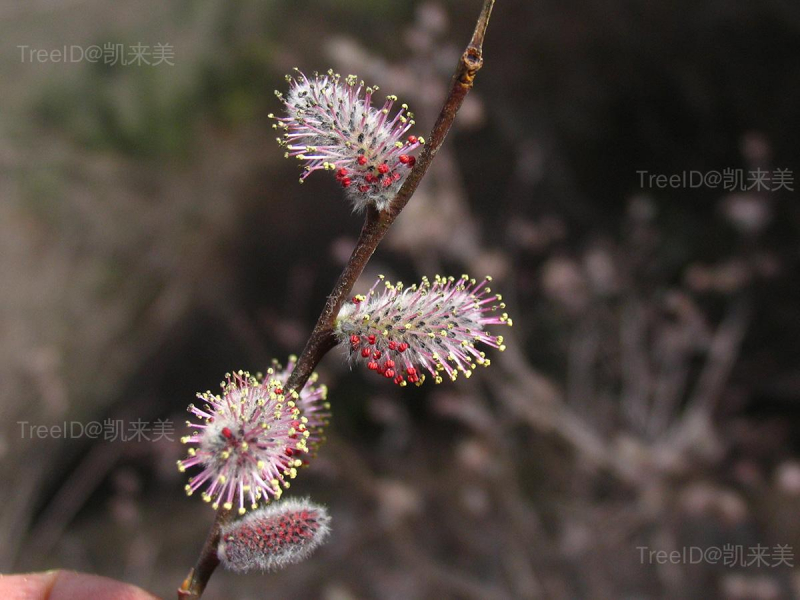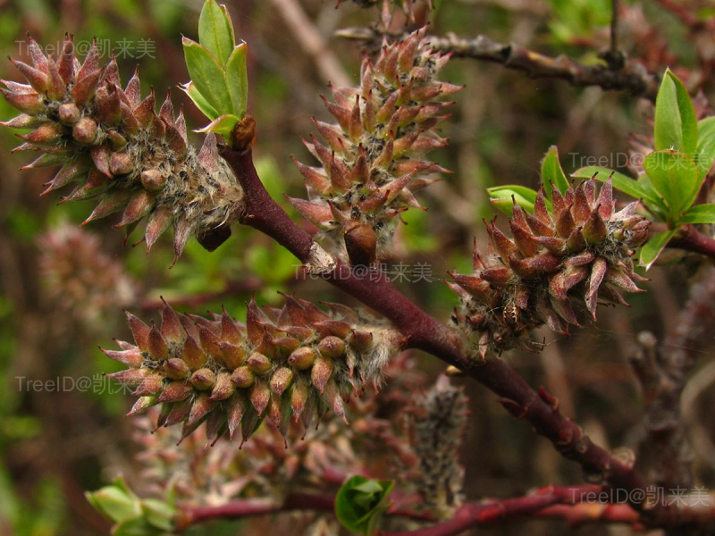 小枝暗紫红色或灰黑色。叶倒卵状长圆形或倒披针形,先端急尖,基部近圆形至楔形,边缘有细锯齿;叶柄短。花药紫红色,合生为1或仅花丝合生;苞片黑色或下部为褐黄色,两面有白色长柔毛。蒴果卵形,密被短柔毛。