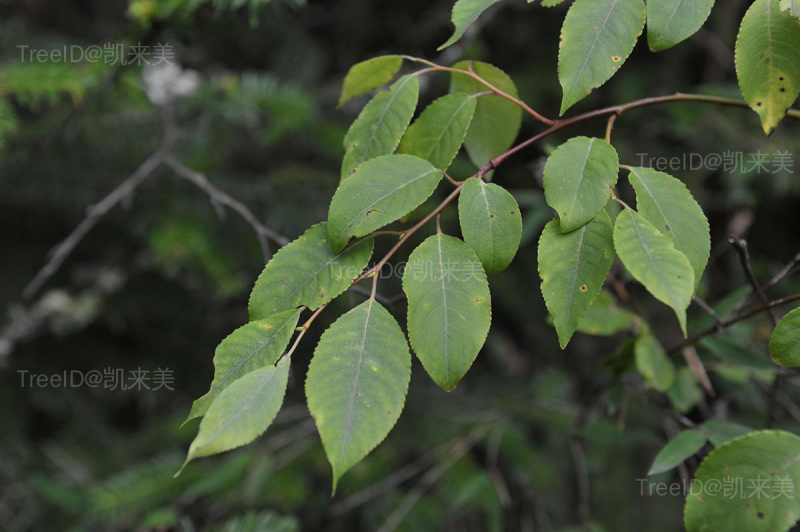 叶芽三角状卵形,先端微内弯。叶椭圆形,长圆状披针形,卵状披针形或卵形,长2.5-8厘米,宽1.5-2.3厘米,先端渐尖,基部宽楔形至微心形,,边缘有不明显的细腺齿,稀全缘。