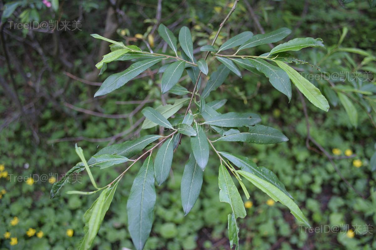 叶披针形至倒披针形,长5-11厘米,宽1.2-2.5厘米,先端钝或急尖,基部楔形,上面深绿色,具白柔毛,下面浅绿色,有白柔毛或无毛,边缘近全缘或有腺圆锯齿,稀全缘;叶柄长2-8毫米,具白柔毛;托叶半卵状椭圆形。