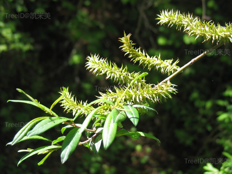 叶披针形至倒披针形,长5-11厘米,边缘近全缘或有腺圆锯齿,向下反卷,叶两面及叶柄均具白柔毛。雄花序无梗;雌花序圆柱形,长2-6厘米,有短梗,基部有2-3枚全缘的小叶。蒴果有毛或无毛。