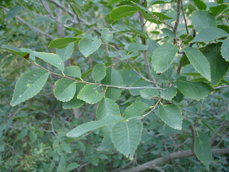 叶卵形至椭圆状披针形,先端渐尖至尾状渐尖,基部偏斜,边缘具钝而整齐的单锯齿。