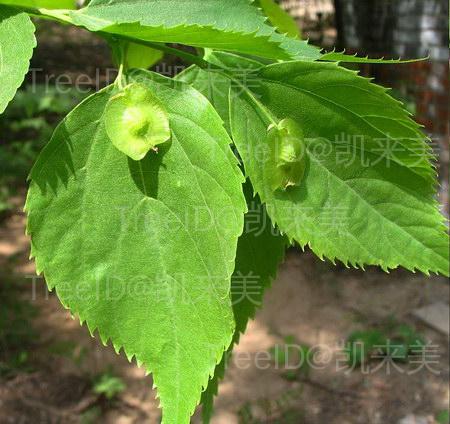 叶卵形或椭圆状卵形,边缘有锐锯齿,具三出脉,侧脉在近边缘处弧曲向前。花单性,雌雄同株,生于叶腋;雄花簇生;雌花单生。翅果近方形或近圆形,翅宽,先端有凹缺。