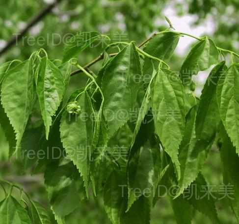 叶纸质,宽卵形至长卵形,先端渐尖至尾状渐尖,基部不对称,边缘有不整齐的锯齿,基部3出脉。