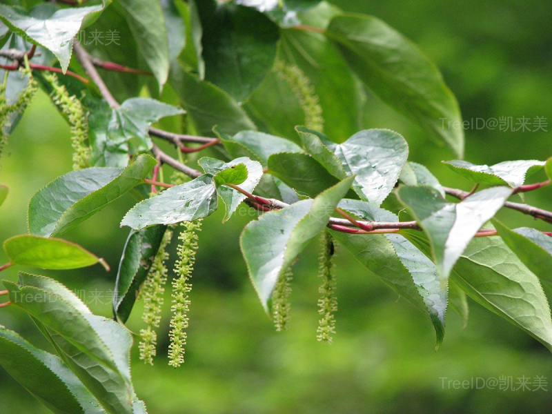 穗状花序下垂,着生于短枝顶端,花小,多花;花被淡绿色或黄绿色。