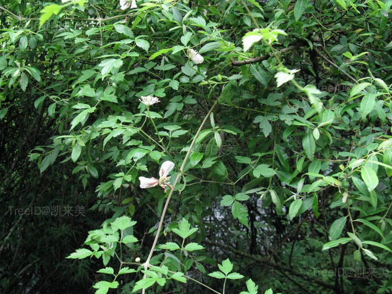 一至二回羽状复叶对生,5-15小叶,基部二对常2-3深裂、全裂至3小叶;小叶片倒卵状椭圆形、卵形至宽卵形,顶端渐尖,边缘有缺刻状锯齿。花单生或聚伞花序有3花,腋生,直径3.5-5厘米;萼片5-7,开展,白色。瘦果扁平,宿存花柱长达3厘米。