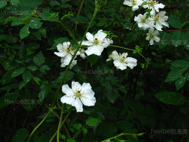 花单生或聚伞花序有3花,腋生;花直径3.5-5厘米;萼片5-7,开展,白色,楔状倒卵形或长圆状倒卵形,外面有短柔毛,中间带褐色部分呈长椭圆状。