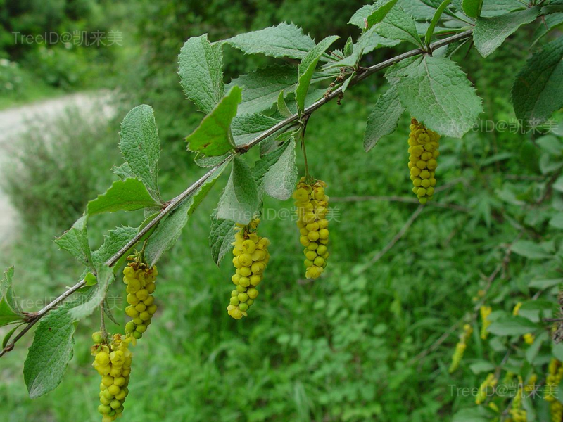 叶矩圆状椭圆形或倒卵形,边缘有25-40刺状细锯齿,叶两面有疏柔毛,叶柄短。总状花序穗状。浆果矩圆形,血红色。
