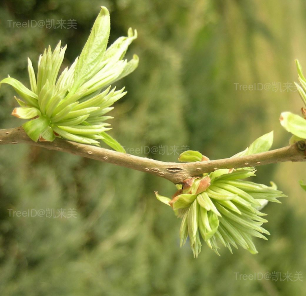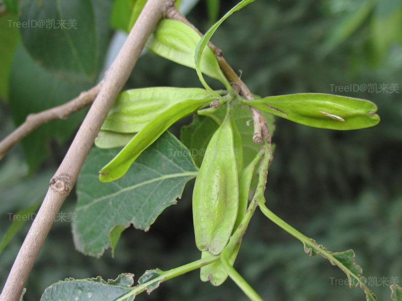 叶椭圆形或椭圆状卵形,长6-18厘米,宽3-7.5厘米,边缘有锯齿。花单性,具短梗,雌雄异株,无花被,常先叶开放,生于小枝基部;雄蕊6-10,花药条形;柱头2叉状。翅果扁平,狭椭圆形,先端2裂。