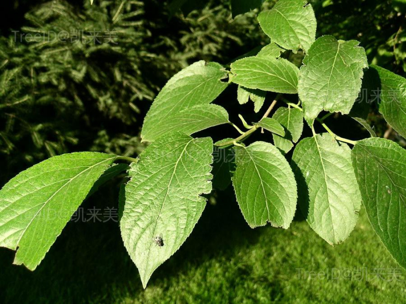 叶椭圆形、卵形或矩圆形,薄革质,长6-15厘米,宽3.5-6.5厘米;基部圆形或阔楔形,先端渐尖;边缘有锯齿。