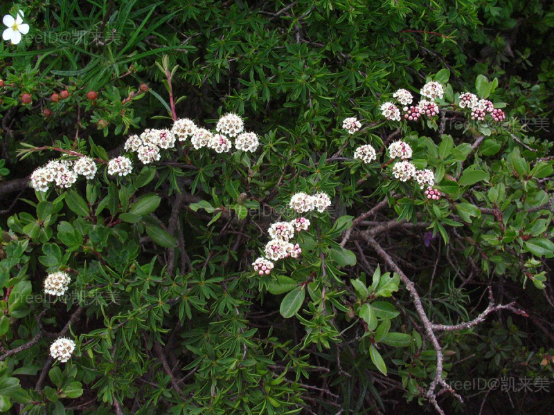 伞形总状花序具短总梗,有花3-15朵;苞片线形;花直径5-7毫米;萼筒钟状,内面具短柔毛;萼片三角形;花瓣倒卵形或近圆形,白色。