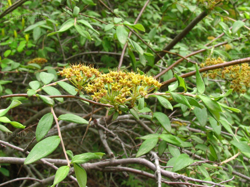 叶片卵状椭圆形,长1.5-3厘米,全缘,下面密被长毛。伞形总状花序具多花;花瓣白色。蓇葖果直立开张,被短柔毛,具反折萼片。