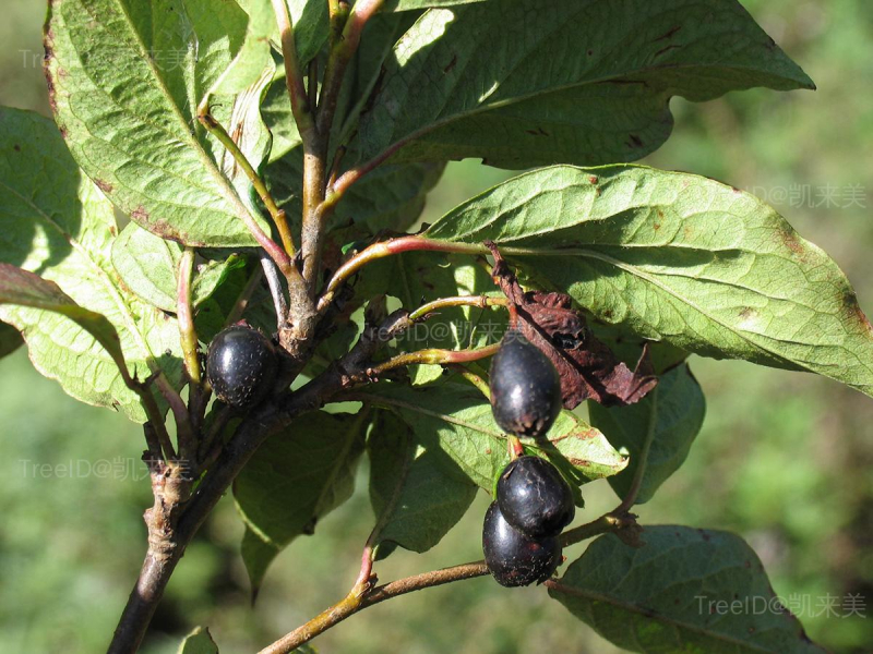 果实卵形或近球形,长8-10毫米,直径6-7毫米,黑色,常具2-3小核。