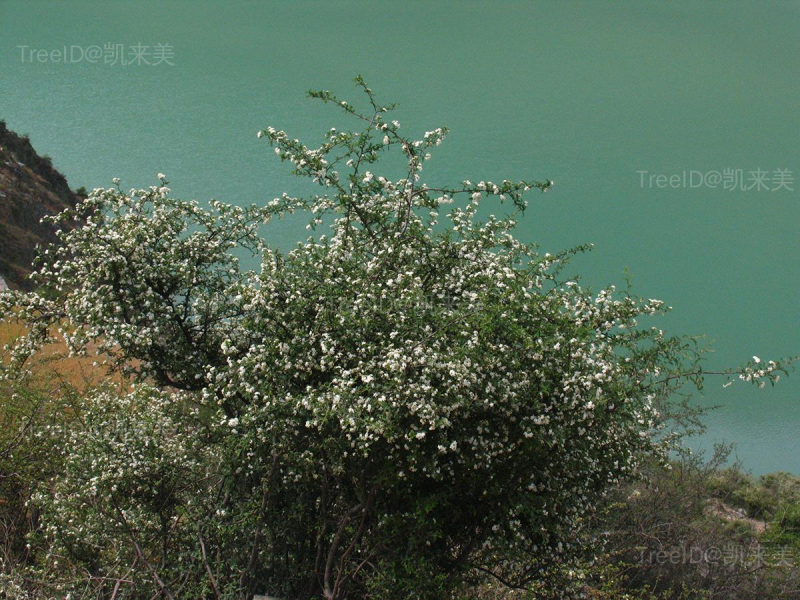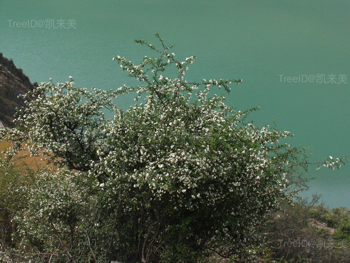顶生伞房花序有花3-5朵,直径2-3厘米;总花梗和花梗均密被灰白色柔毛;苞片膜质,线状披针形,早落;花直径约1厘米;萼筒钟状;萼片卵状披针形;花瓣长圆形,白色。