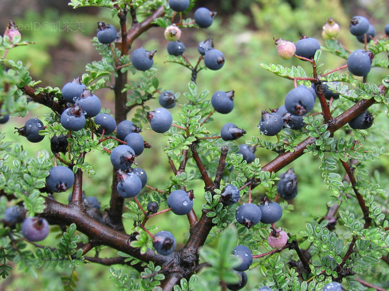 果实卵形或近球形,直径6-8毫米,蓝黑色,具宿存反折萼片;小核5,骨质。