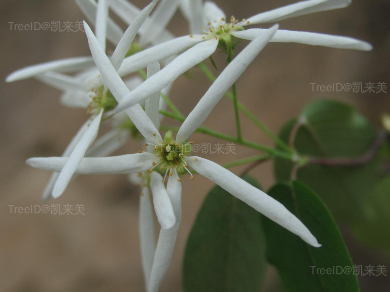 总状花序多花,长4-5厘米;花梗细;苞片线状披针形,早落;花直径3-4.5厘米;萼筒杯状,外被柔毛,后渐脱落;萼片披针形或三角披针形;花瓣长圆披针形或椭圆披针形,白色。