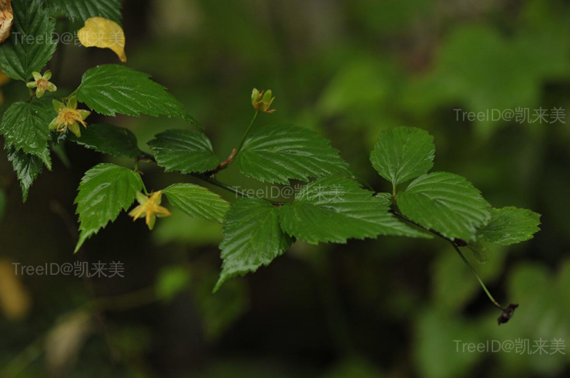 叶互生,三角状卵形或卵圆形,边缘有尖锐重锯齿;叶柄长5-10毫米;托叶带状披针形,早落。