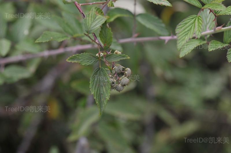 羽状复叶常具7-9枚小叶,小叶椭圆形,下面密被绒毛,边缘常具不整齐锯齿。短圆锥状花序;花红色。聚合果半球形,深红色转为黑色,密被灰白色绒毛。