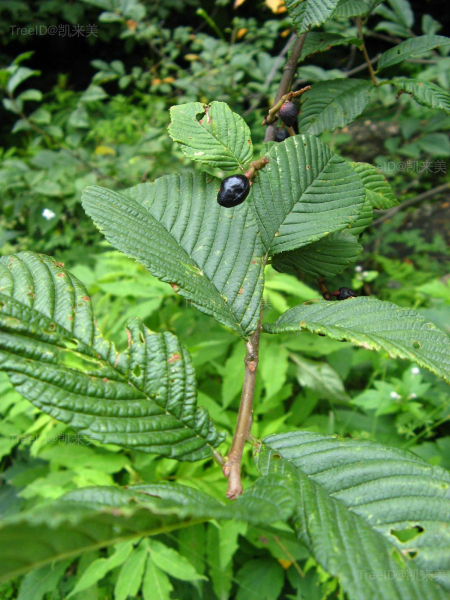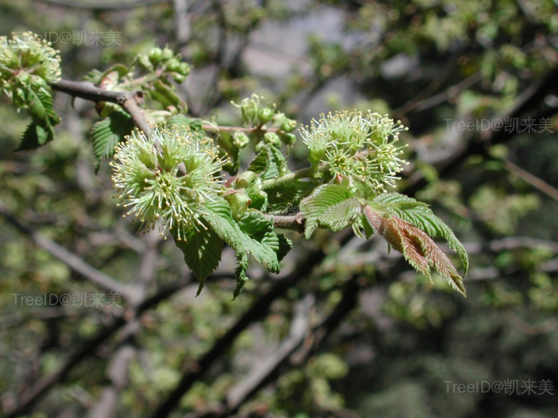 叶片长圆形,长3.5-12厘米,宽1.8-6厘米,叶边有缺刻状不整齐重锯齿,叶下面密被柔毛;叶柄长2-7毫米。花多数成总状,幼时密集,逐渐伸展;无花瓣。核果卵球形;果梗短粗,被柔毛。
