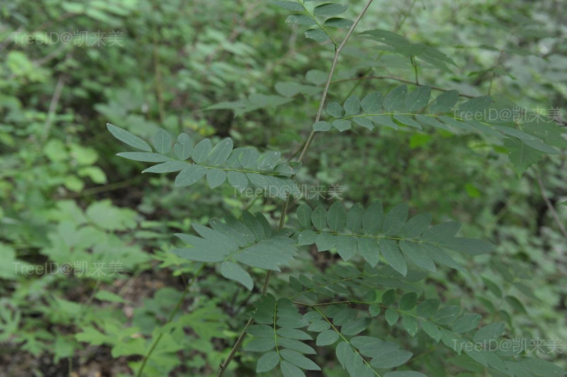 羽状复叶长15-25厘米;小叶9-15片,卵状长圆形,长2.5-7.5厘米,宽1.5-5厘米,顶端渐尖而有细突尖。