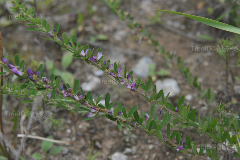羽状复叶具3小叶;小叶长圆形,下面密被毛。总状花序腋生,具2-6朵花;花冠白色,基部带大紫斑。荚果倒卵形,密被毛,短于宿存萼。