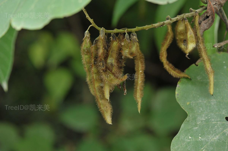 荚果长椭圆形,长5-9厘米,宽8-11毫米,扁平,被褐色长硬毛。