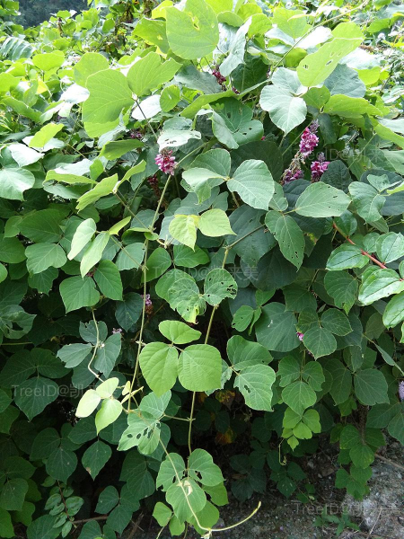 羽状复叶具3小叶;小叶全缘或3浅裂,顶生小叶宽卵形,长7-15厘米,侧生小叶斜卵形,稍小。总状花序长15-30厘米,中部以上多花密集;花冠紫色。荚果长椭圆形,长5-9厘米,扁平,被褐色长硬毛。