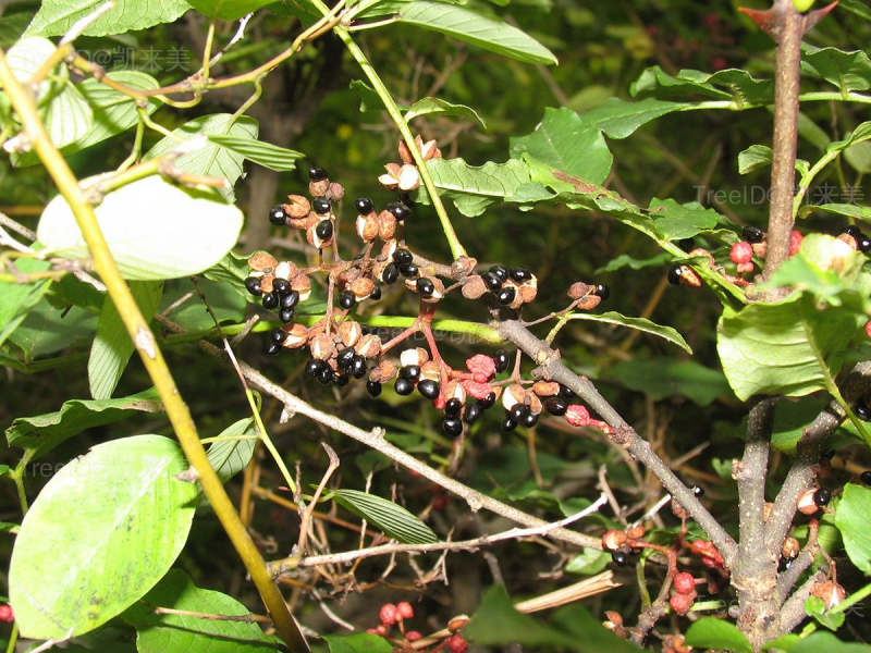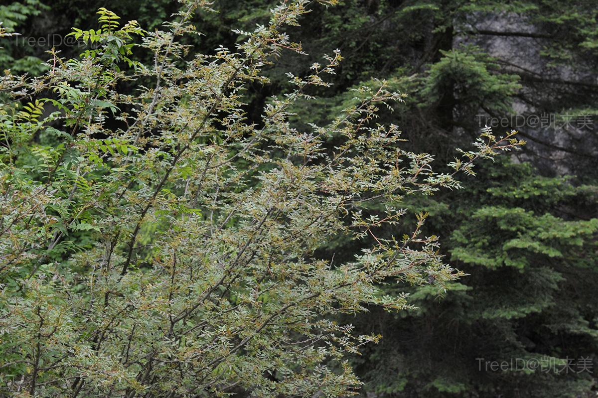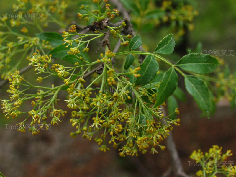羽状复叶具小叶5-11,卵形,边缘有细钝锯齿。聚伞状圆锥花序顶生;花单性,花被片4-8。蓇葖果球形,熟时红色至紫红色,密生疣状突起的腺体。